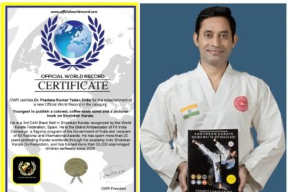Karate Coach Dr. Pradeep Kumar Yadav entered into the book of Official World Record.